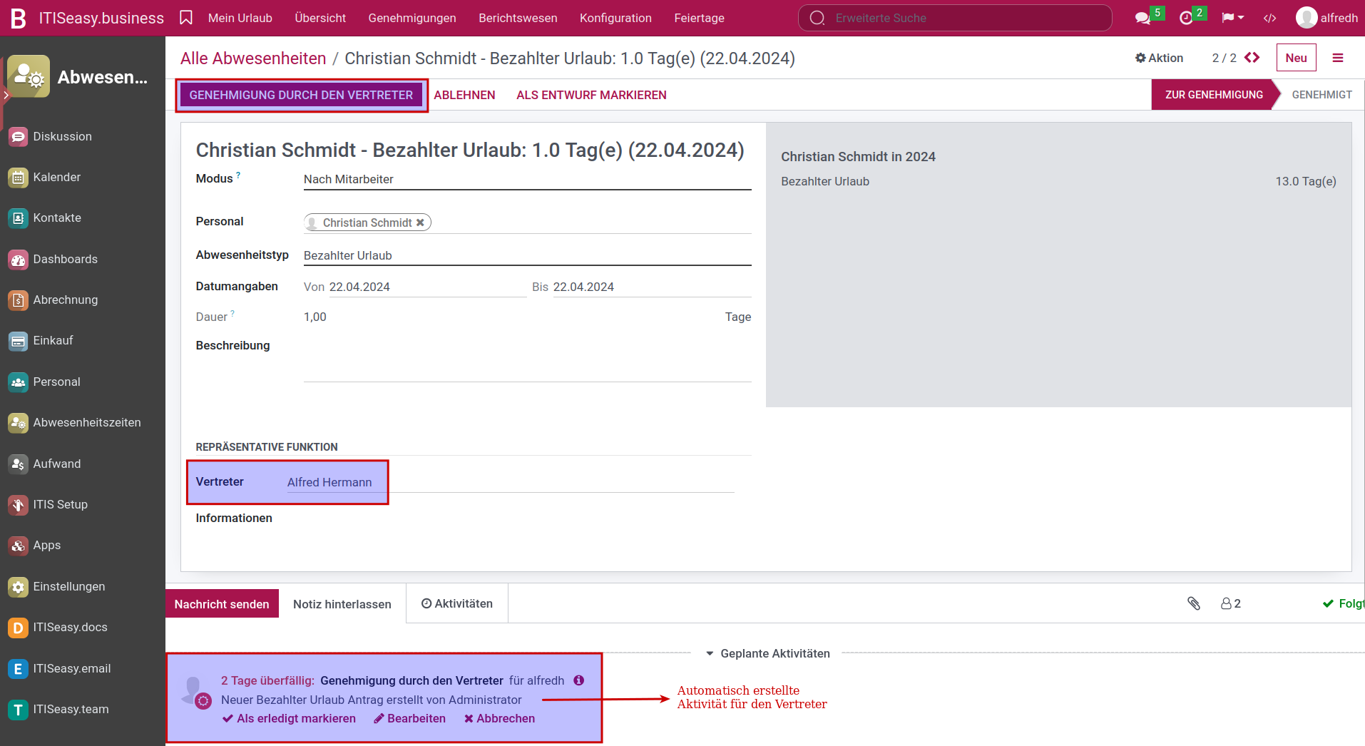 ITISeasy.business  Leave - Your ERP Vacation Management